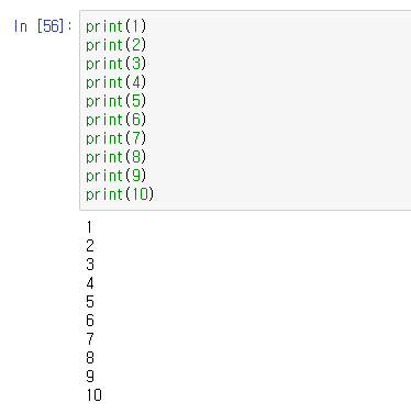 print()함수를 이용해서 1부터~10까지 숫자를 출력할려고 합니다.