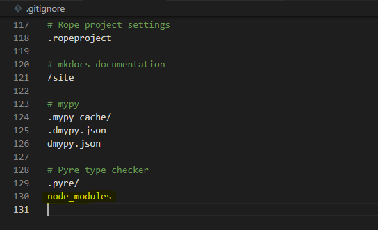 8. .gitigonore 파일에, node_modules를 타이핑하고 저장