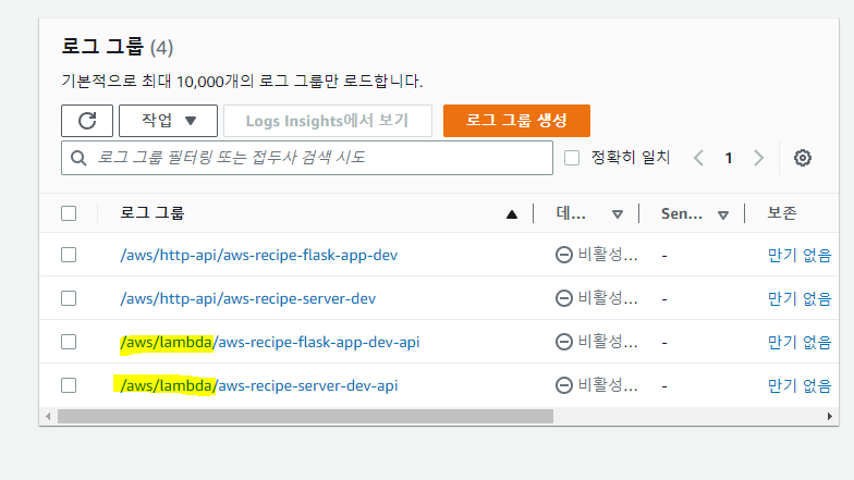 7. 에러 확인을 위해 aws cloudwatch 로 갑니다.