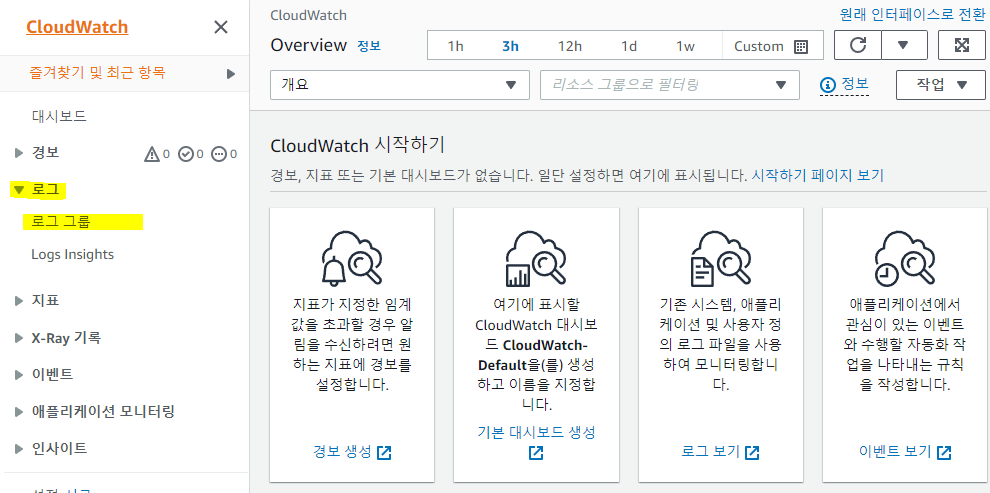 7. 에러 확인을 위해 aws cloudwatch 로 갑니다.