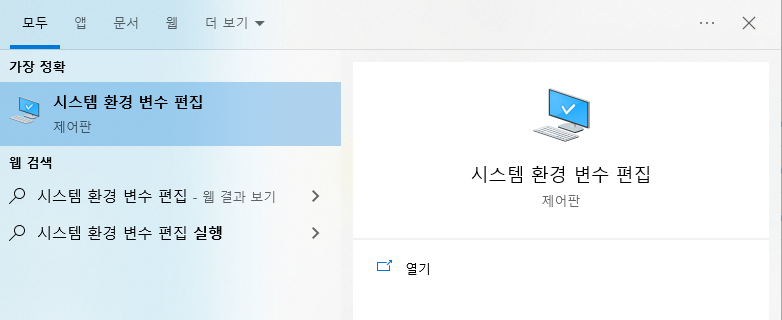 - 검색창에서 시스템 환경 변수 편집을 입력합니다.