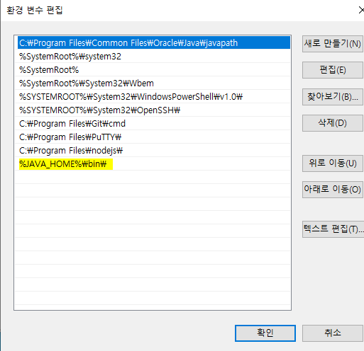 변수이름으로는 JAVA_HOME 을 입력하시고 변수값으로는