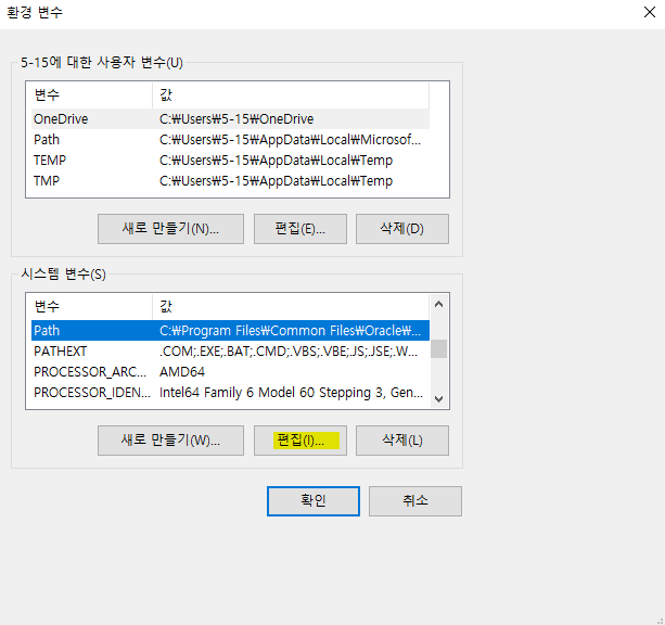 - 환경변수를 눌러줍니다.