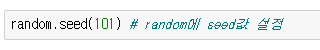 seed() 는 random하게 나오는 숫자들의 순서를 지정할 수 있게 된다.