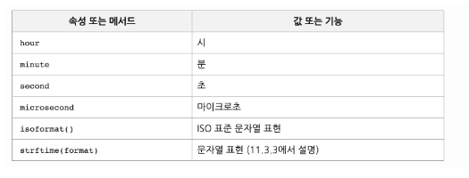 시각을 다루는 방법은 마찬가지로 from datetime import time 으로