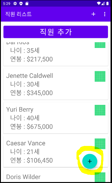 Floating Action Button 은 화면에 둥둥 떠다니는 버튼을 의미합니다.