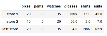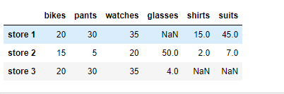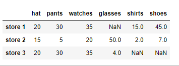 df.drop('store 2' , axis=0 )