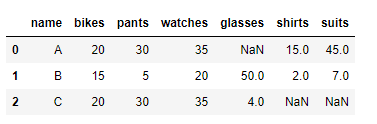 df.rename(columns={'bikes' : 'hat' , 'suits' : 'shoes '})