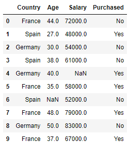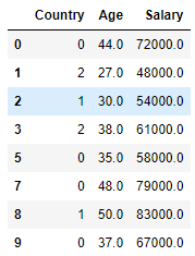 X = df.loc[ : , 'Country' : 'Salary' ]