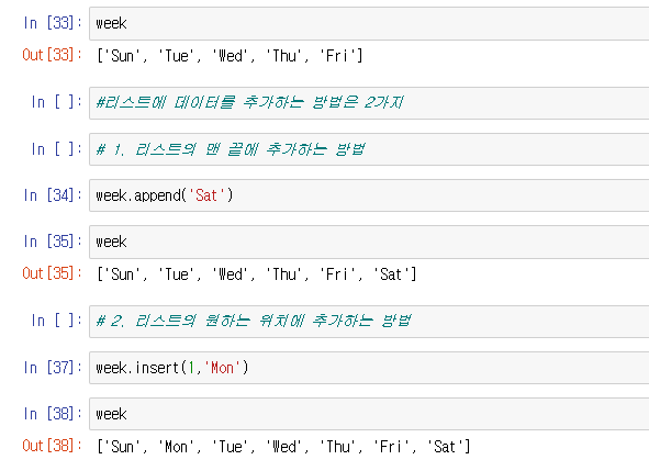 list 는 데이터를 추가하기 위해서 append() , insert()을 이용하게 됩니다.