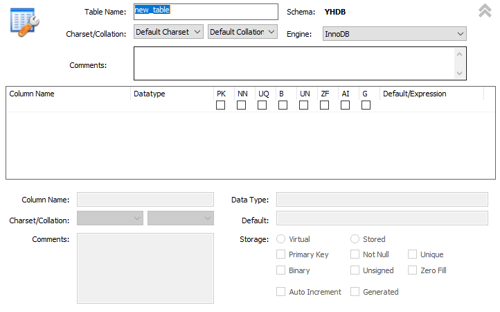 아래에 Column name , Datatype ... 이 있는 항목에 테이블에 어떠한 내용이 들어올지 정의합니다.