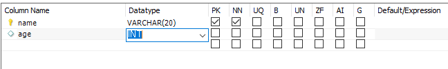 저는 cats 라는 테이블에 이름(name) , 나이 (age) 테이블을 만들었습니다.