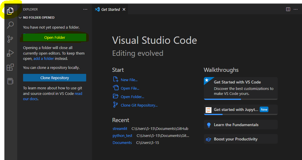 explorer를 선택하여 내가 쓸 코드의 저장위치를 선택합니다.