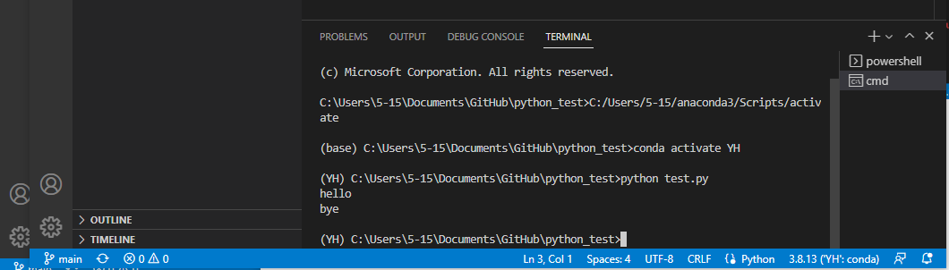 그리고 여기에 python 아까만든~~.py 를 누르면 실행이됩니다.
