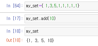 추가는 add()을 이용하며 my_set ={···} 을 통해 임의의 set을 만들고